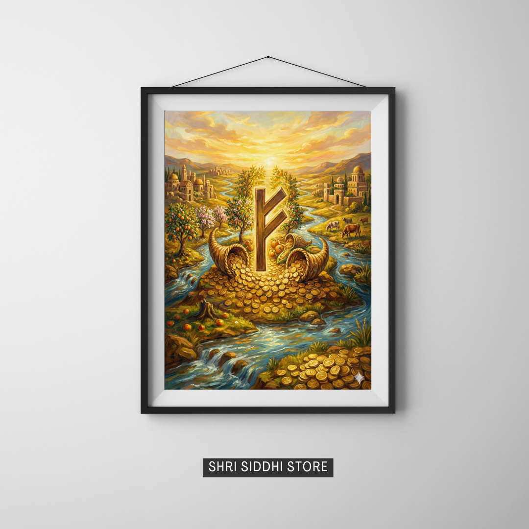 Fehu, the first rune of the Elder Futhark, embodies the energy of abundance, prosperity, and material wealth. This sacred symbol represents cattle and livestock in ancient Norse tradition—the ultimate measure of wealth and security. Traditionally placed facing west to align with the direction of completion and material manifestation, Fehu serves as a powerful focal point for those seeking to attract financial flow and cultivate abundance consciousness. Whether displayed in your workspace, home altar, or carried as a personal talisman, this rune invites the vibration of prosperity into your life and intentions.